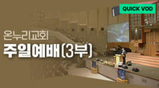 온누리교회 주일예배 3부 ※ 주일예배 퀵VOD는 예배가 끝나는 즉시 퐁당에서 가장 빠르게 만나실 수 있습니다. 자동 제공되는 영상 특성상 시작 타이틀과 종료 후 일부 구간이 함께 포함될 수 있습니다.